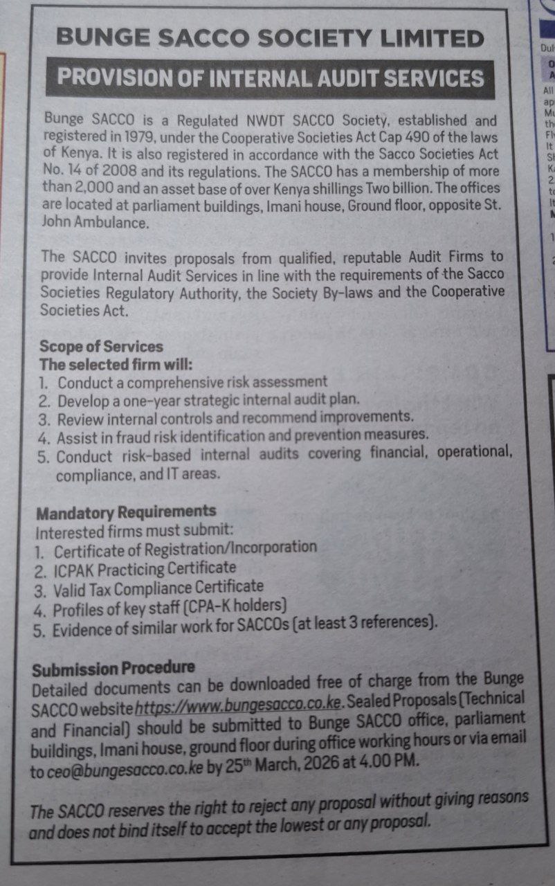 BUNGE Sacco society limited was registered in 1971 under the cooperative societies Act of the laws of Kenya with the primary objective of mobilizing savings and extending credit facilities to its members at affordable rates thereby empowering them economically. The Sacco was licensed as a regulated Non Withdrawable Deposit taking Sacco by th the Sacco Societies Regulatory Authority (SASRA) on 16 August, 2021.